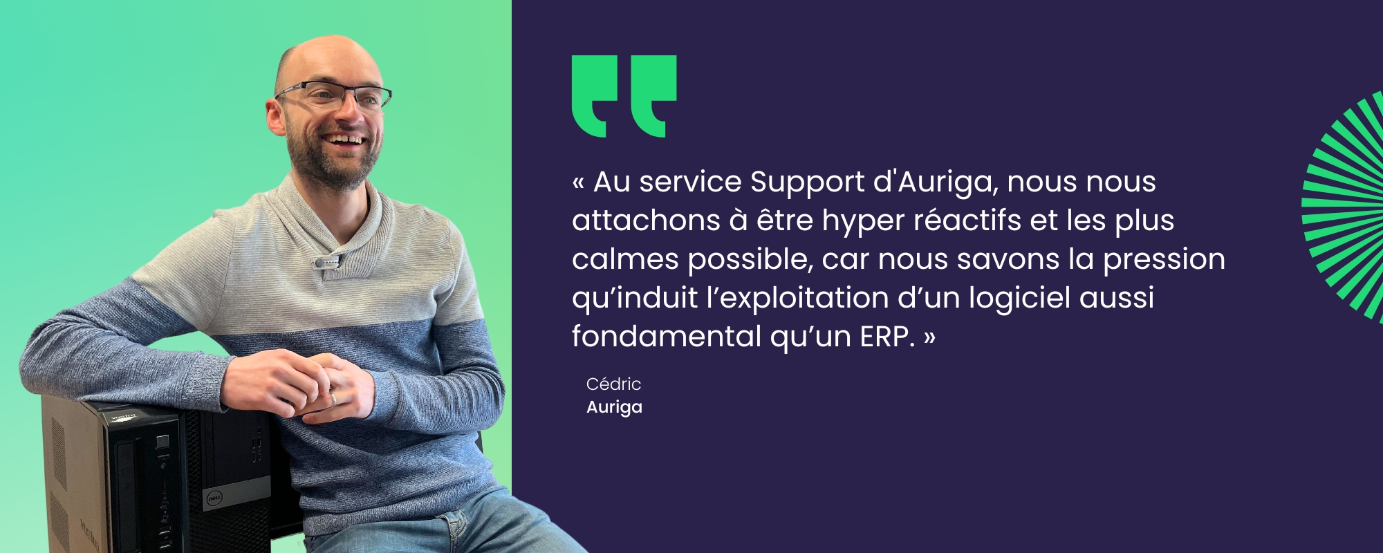 Au service Support d’Auriga, nous nous attachons à être hyper réactifs et les plus calmes possible, car nous savons la pression qu’induit l’exploitation d’un logiciel aussi fondamental qu’un ERP. Mais derrière l’efficacité d’une telle équipe il y a des femmes et des hommes qui, comme dans tout service, apprécient les échanges cordiaux, y compris quand il s’agit de remonter un bug ou un oubli (c’est rare mais ça peut arriver). Eh oui, nous sommes des êtres sensibles, pas des bots ! »
